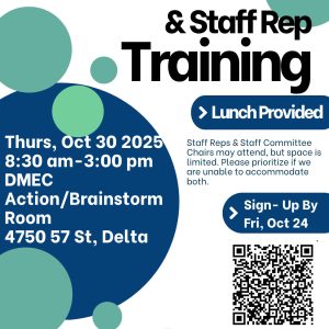 🎉 Rookie Staff Reps — This Training is for YOU! 🎉 Sign Up Now for Rookie Staff Rep Training Are you a new Staff Rep? Join us for our Rookie Staff Rep Training, hosted by the Delta Teachers’ Association, on Thursday, October 2. This full-day workshop is designed to help you: ✅ Understand your role...