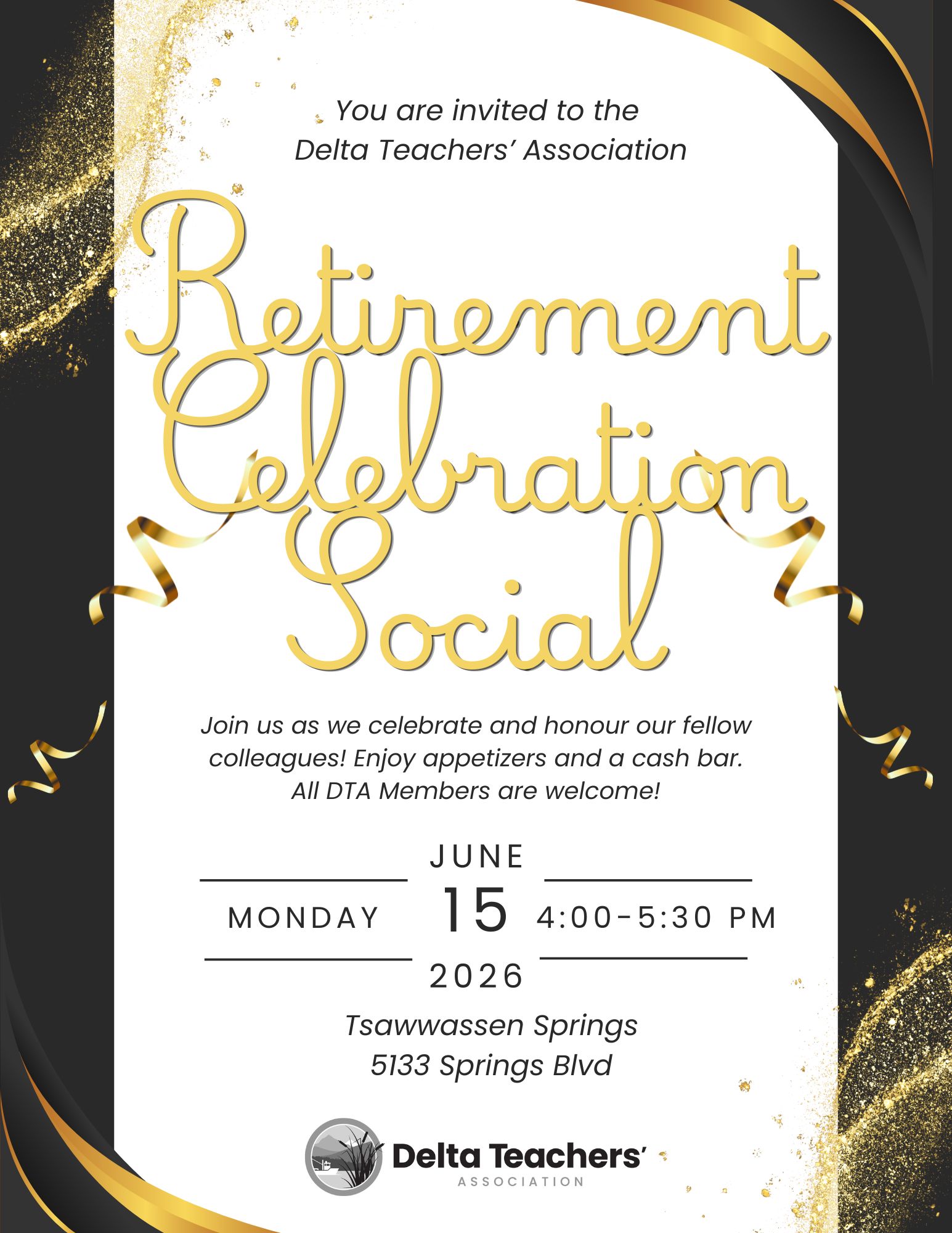 Please join us for the DTA Retirement Celebration Social, as we gather to honour and celebrate our fellow colleagues.