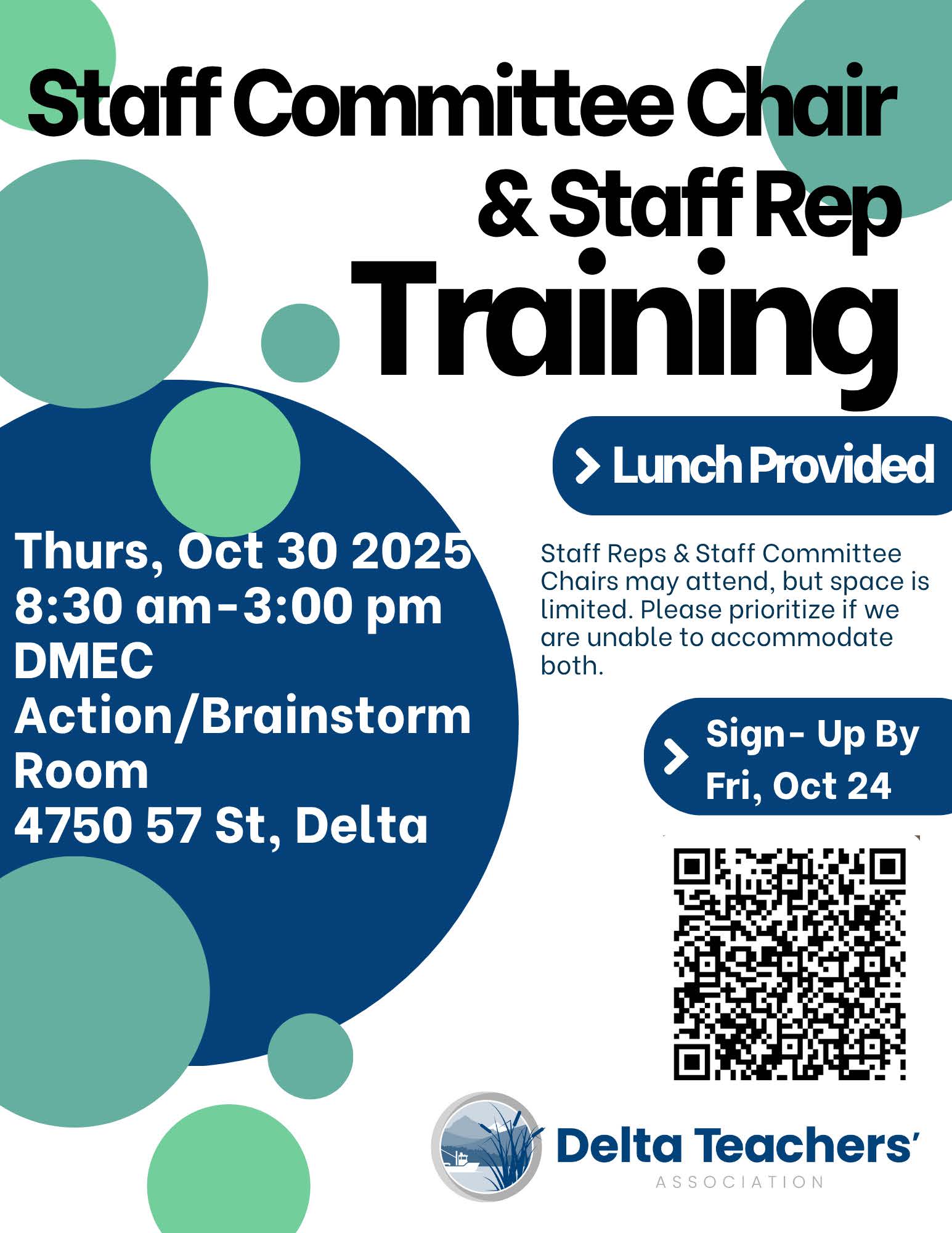 Staff Rep Training + Add to Google Calendar + iCal / Outlook export 00 days 00 hours 00 minutes 00 seconds Date Oct 30 2025 Time 8:30 am - 3:00 pm Location Delta Manor Education Centre 4750 57 St, Delta, BC V4K 1R5 Category Workshops/Trainings Organizer Brianna Redwood Phone 604-946-0391 Email brianna@deltateachers.org Share this event
