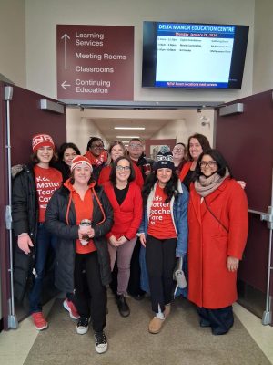 On Wednesday, January 28, 2026 members of the DTA and CUPE 1091 gathered at MLA Ravi Kahlon’s office to raise awareness of government underfunding. Members of the community showed their support with lots of honking and waving.